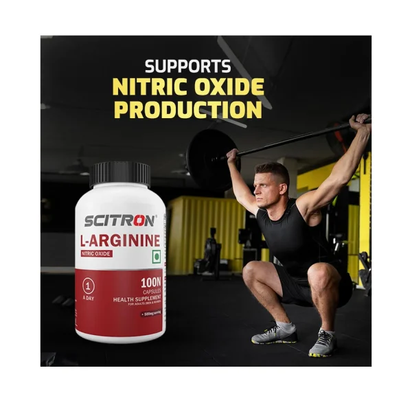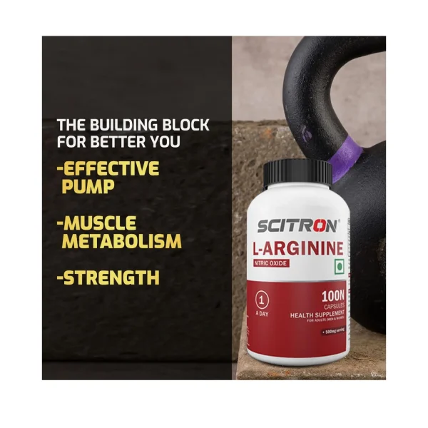 - Scitron L-Arginine improves muscle oxygenation, reduces muscle fatigue, and power.