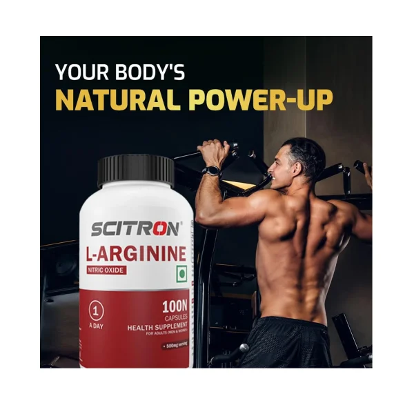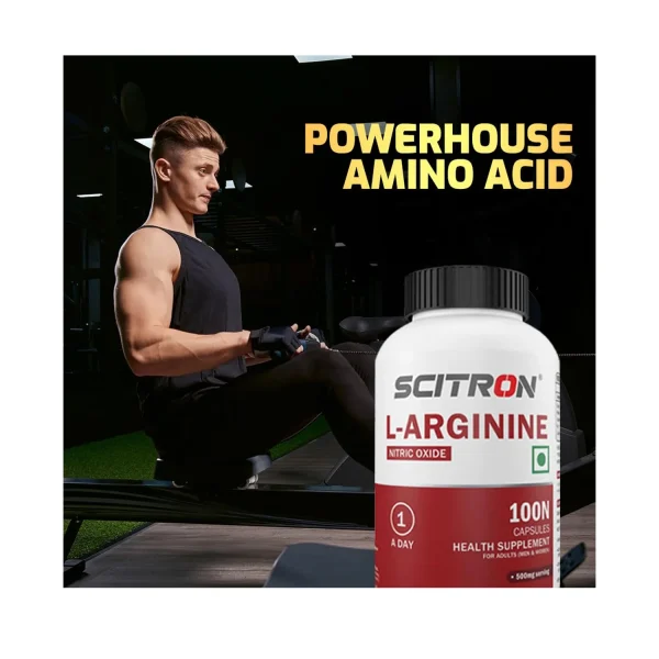 - Scitron L-Arginine helps with muscle growth and recovery.