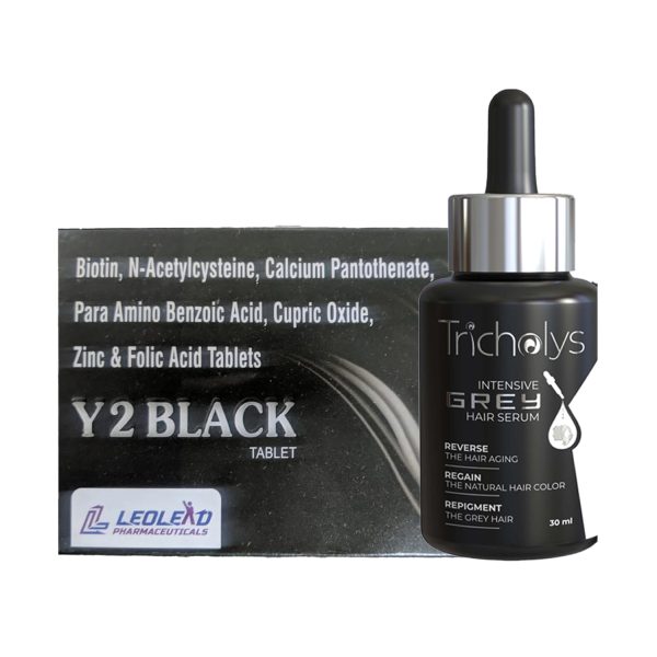 Anti Grey Hair Combo (Y2 Black Capsule 10nos + Tricholys Intensive Grey Hair Serum 30ml)