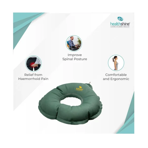 Healthshine, specially designed with a donut-shaped cushion, helps relieve back pain, support your tailbone, and take the pressure off your spine.