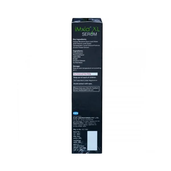 Imxia XL Serum is a hair growth serum that helps in hair growth, prevents follicle ageing, hair fall, increases hair strength, enhances elasticity and also prevents thinning of hair. It is also beneficial in alopecia and male pattern baldness.