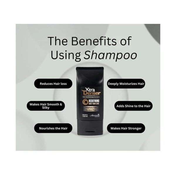 - Xtra Denser Hair Revitalizing Shampoo is used to stimulate follicles for thicker and denser hair.