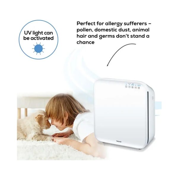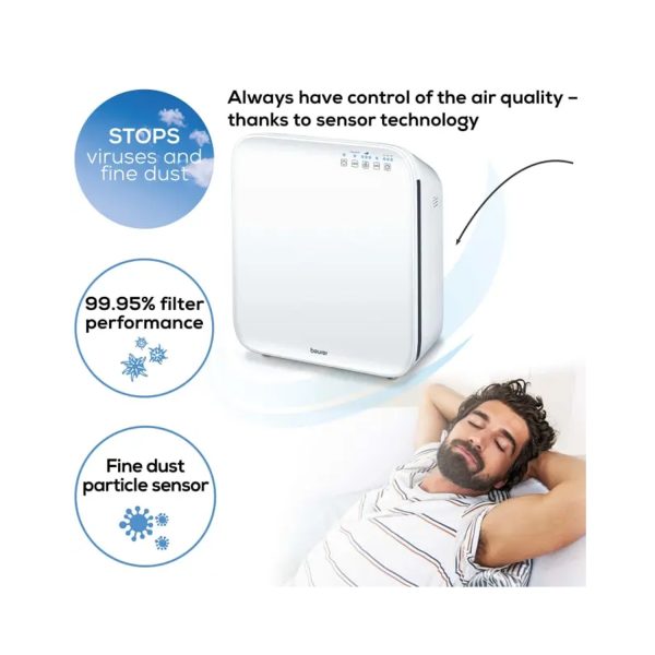 Beurer LR 310 air purifier has three layered filtration system that eliminates chemicals from the air and reduces allergens. It also neutralizes unpleasant odours and improves sleep.