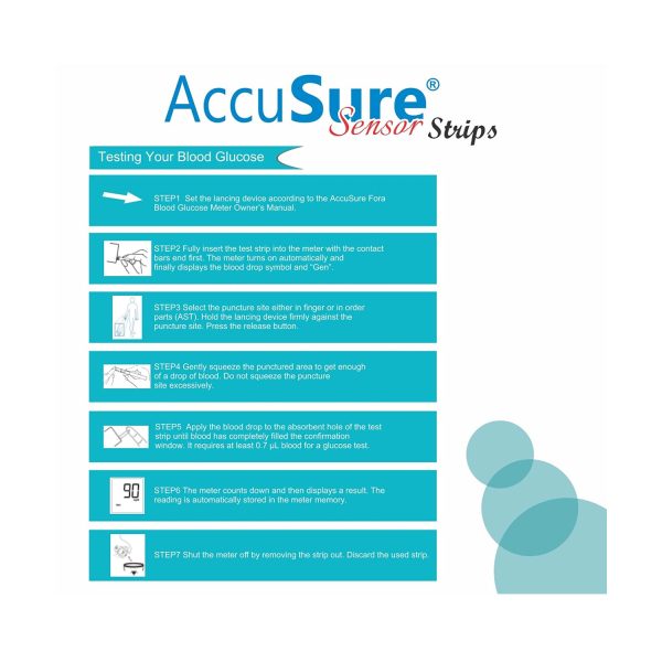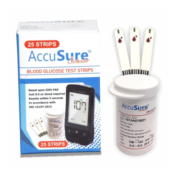 - Accusure sensor test strips are ideal for self-testing the blood sample.