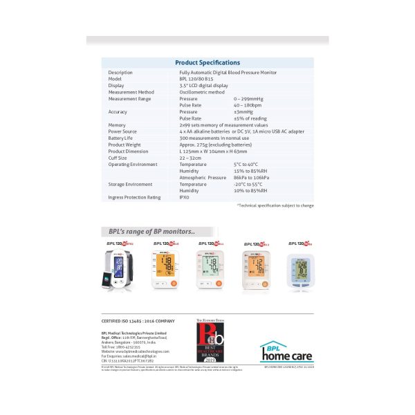 BPL blood pressure monitor is ideal for home use. So you can use at home as it is a fully automated blood pressure monitor with one-touch easy operation.