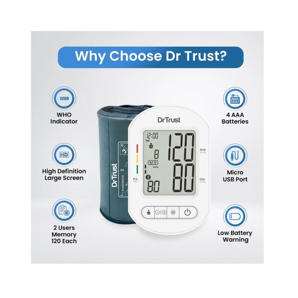 Dr Trust Bp Check Pro 124 Digital Blood Pressure Monitor is used to measure BP level for people with high or low blood pressure, those who have recently changed medications, with other chronic conditions