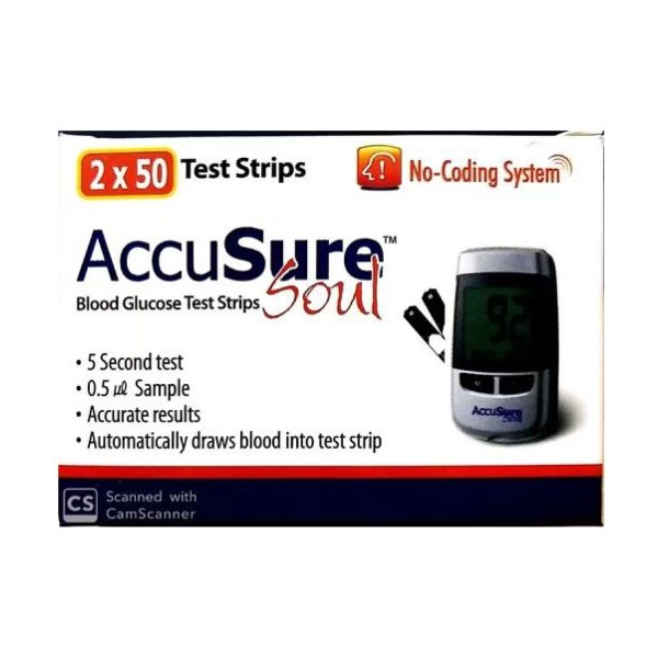 - Accusure soul glucometer has 100 test strips.