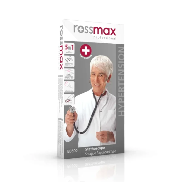 Rossmax EB500 stethoscope is intended for medical diagnostic purposes only. It can be used for listening to heart, lung, and other body sounds, as well as for normal auscultation.