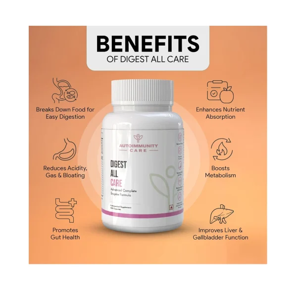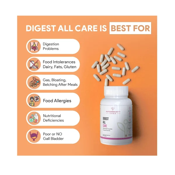 Digest all care offers digestive support, assists with faster digestion, and helps to get rid from digestive issues like gas, bloating and indigestion.