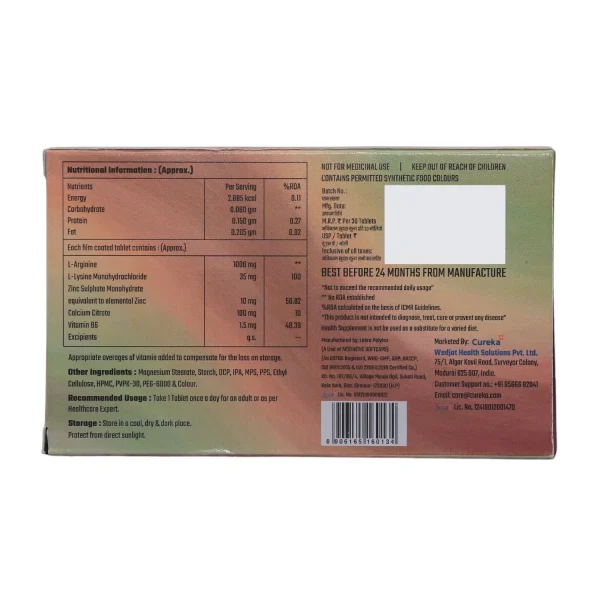 - L-Arginine, L- Lysine, Zinc Sulphate, Calcium citrate, Vitamin B6