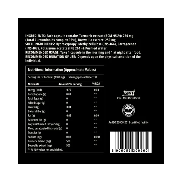 - Combination of curcumin and boswellia has shown faster, longer-lasting relief for joint and muscle pain, and stiffness.