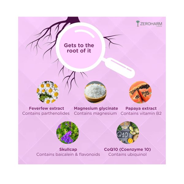 Holo Migraine Capsules are formulated with a synergistic blend of nano-formulated ingredients such as Feverfew, Magnesium glycinate, CoQ10, Plant-based Vitamin B2, and Skullcap extract. These ingredients are specifically chosen to combat migraines effectively, ensuring optimal absorption and action for long-lasting relief​​.