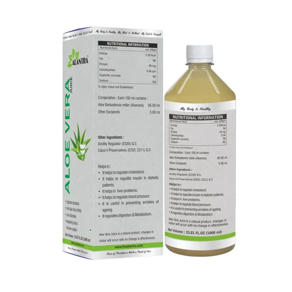 Alantra Aloe Vera Juice helps with joint pain and arthritis, digestive disorders, liver disorders, and improves body’s immune system.