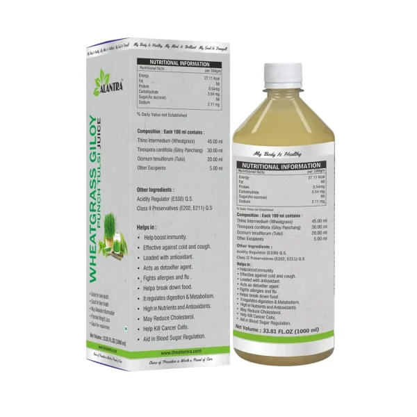 - Alantra Wheatgrass Giloy punch Tulsi Juice alleviates inflammation and promotes weight loss.
