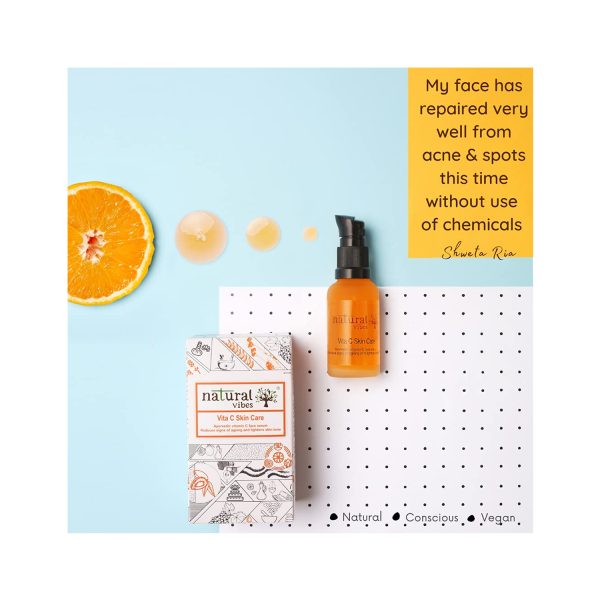 Natural Vibes Ayurvedic Vitamin C Skin Care Serum reduces premature signs of ageing such as fine lines, wrinkles, acne, blemishes, pigmentation and dark spots.