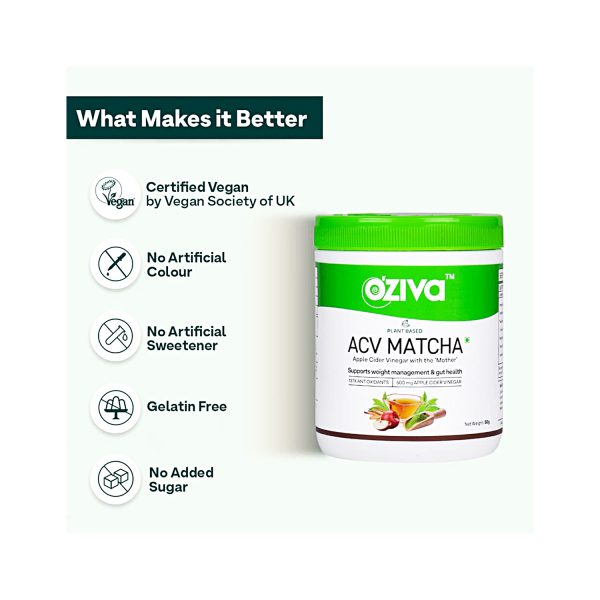 OZiva Plant Based ACV Matcha (With Apple Cider Vinegar) For Weight Loss & Gut Health (50 gm)