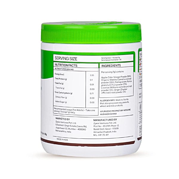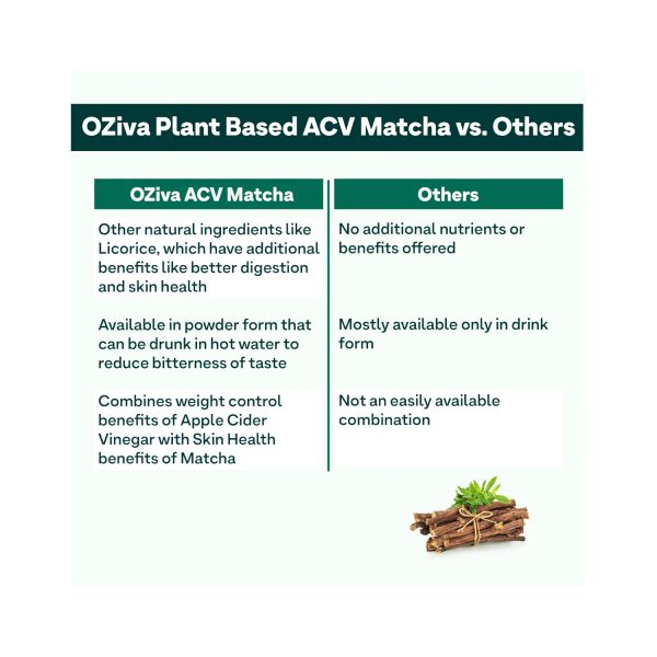OZiva Plant Based ACV Matcha contains the goodness of Apple Cider Vinegar with essential Ayurvedic herbal extracts for weight control, better metabolism, digestion, and skin health.
