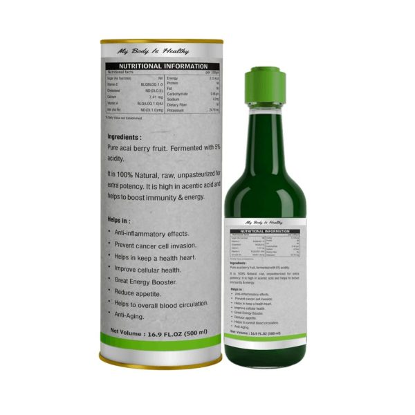 - Pure Acai Berry Fruit fermented with 5% acidity