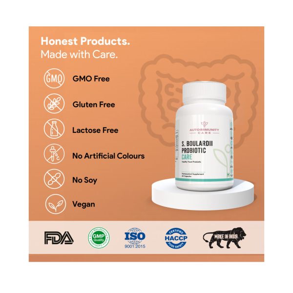 Autoimmunity care S. boulardii Probiotic Care capsules help to improve digestive health, gut health, and immune health and promote the growth of good bacteria.