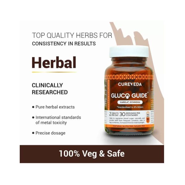 Cureveda Gluco Guide is a clinically proven herbal treatment for diabetes – contains Bitter Gourd, Gymnema & Jamun which help to regulate blood sugar level naturally.Â