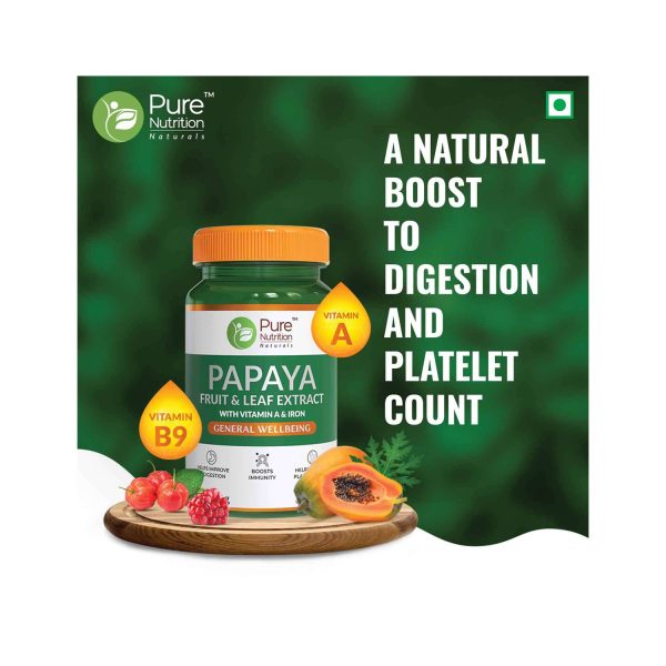 Pure Nutrition Papaya with papaya fruit and papaya leaf extract thus helps ease digestion and serves as an immunity booster.