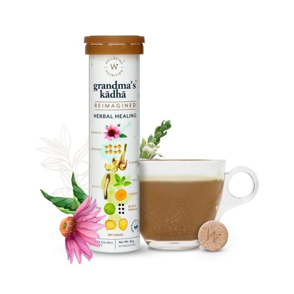 - Grandma’s Kadha effervescent includes some of the adaptogenic herbs that help heal your body from illness.