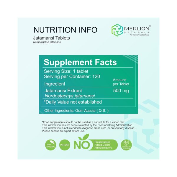 Merlion Naturals Jatamansi Tablets Nardostachys Jatamansi 500mg x 120 Tablets