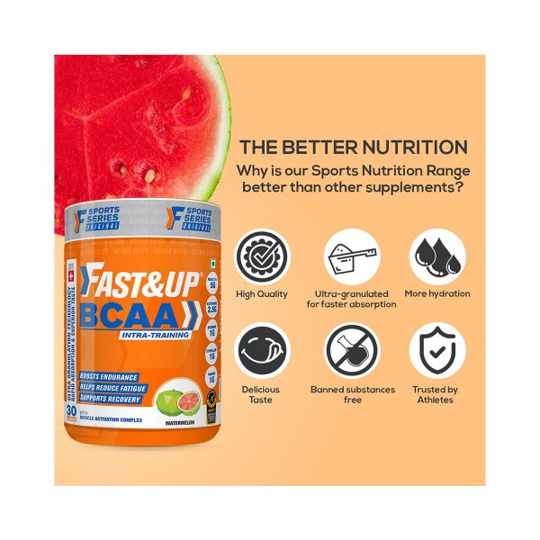 - The Ultra Granulation Technology of Fast&Up BCAA drink ensures rapid absorption, superior taste and instant dissolution of the energizing flavour for intra training muscle anabolic support on both training and rest days.