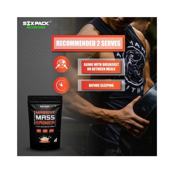 Six Pack Nutrition Massive Mass Gainer Whey Protein Powder Masala Milk Flavour 2lbs