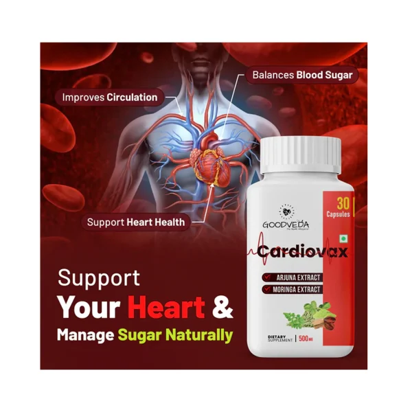 Goodveda cardiovax capsule is safe and effective supplement, proven to have no side effects, and is made from natural extracts that nourish and support heart health.