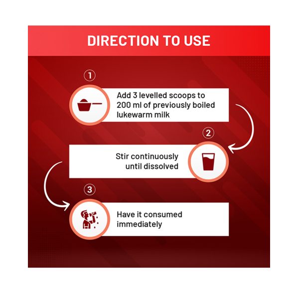 - Add 3 levelled scoops of this powder.