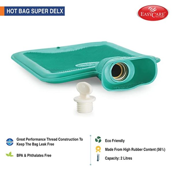 The Easycare Hot Water Bag Deluxe EC 1008 works by filling it with hot water. Once filled, it retains the heat and radiates it through the bag, providing warmth to the targeted area. The bag is equipped with a secure screw cap that prevents any leaks and ensures safety during use.