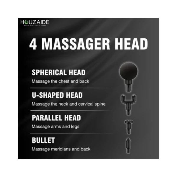 - The Houzaide Gun Massager is used to relieve knots, stiffness, and fatigue in various parts of the body.