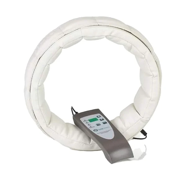 - Includes ring-shaped electromagnetic device that can be put over the head around the neck.
