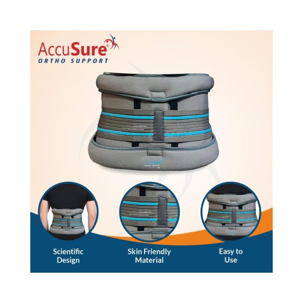 Accusure eco frame back support is scientifically designed to lock flexion, extension as well as rotation movement of lumbar region and provides firm support to the lumbar spine.