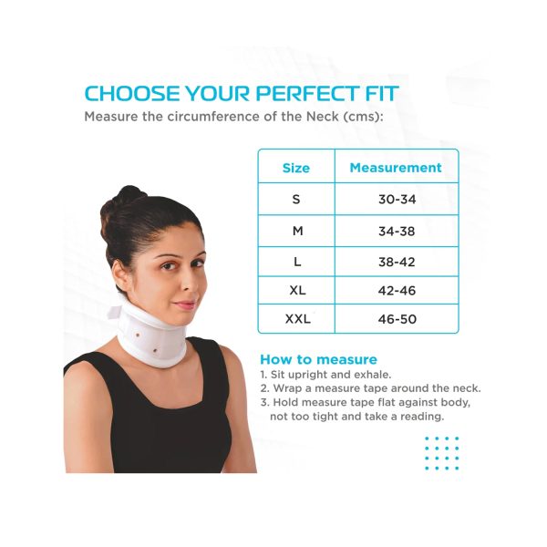 Anatomically designed firm cervical collar made with durable material provides a firm support to your neck and immobilizes the cervical spine.