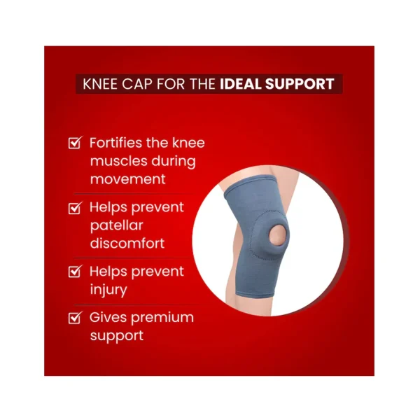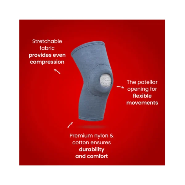 - Knee cap with open patella helps reduce knee pain and discomfort.