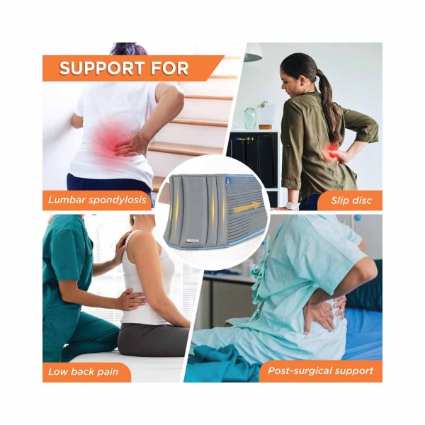 - Supports and reinforces the weak and strained back muscles in the lumbar sacral area.