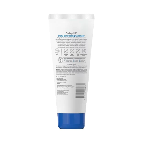 - Cetaphil daily exfoliating cleanser removes dirt, oil and other skin impurities.
