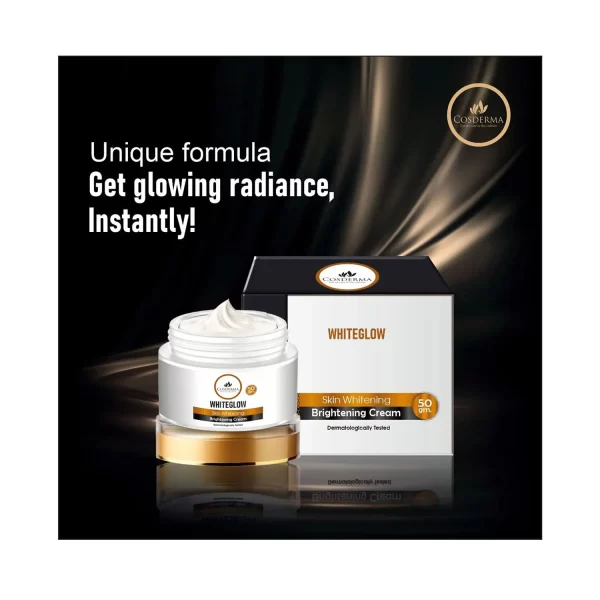 - Cosderma whiteglow cream gives glowing, radiance instantly.