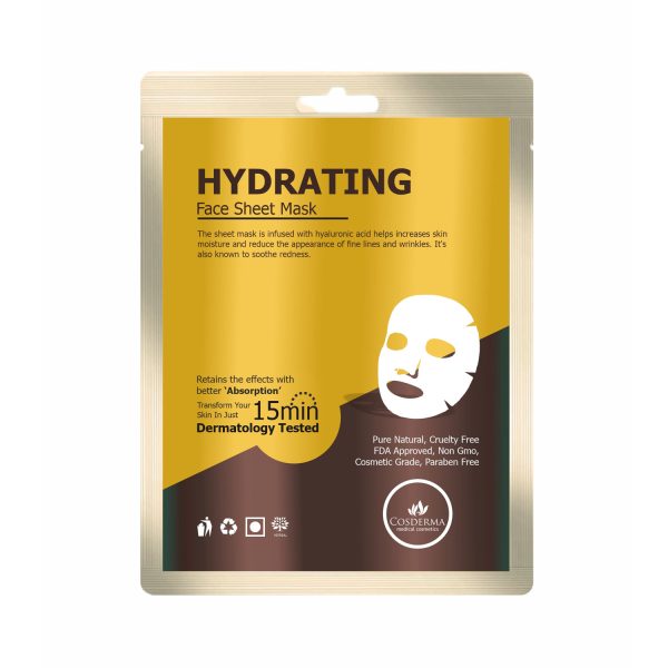 - Cosderma hydrating face sheet mask is enriched with vitamins, antioxidants and botanical extracts.