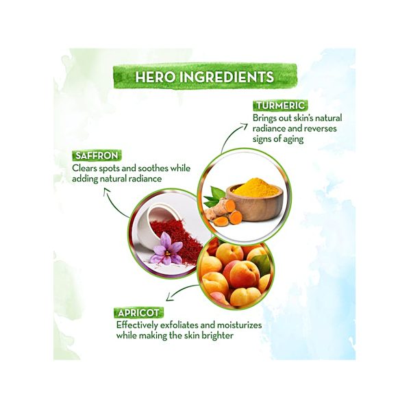 - Turmeric is known to give skin instant glow , reduces signs of aging , protect skin cells from free radical damage , brightens the skin