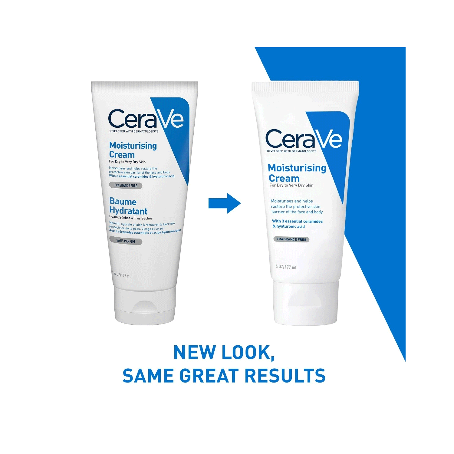 CeraVe moisturizing cream moisturizes and hydrates very dry skin. Ceramides and hyaluronic acid help the skin maintain moisture while also protecting the skin’s natural barrier from additional dehydration and skin damage.