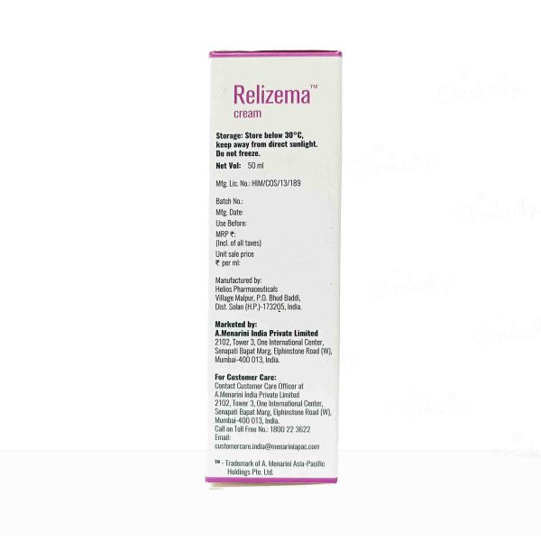 - Relizema cream is formulated with potent ingredients that aid in offering relief from symptoms of skin conditions like erythema, dermatitis, and eczema.
