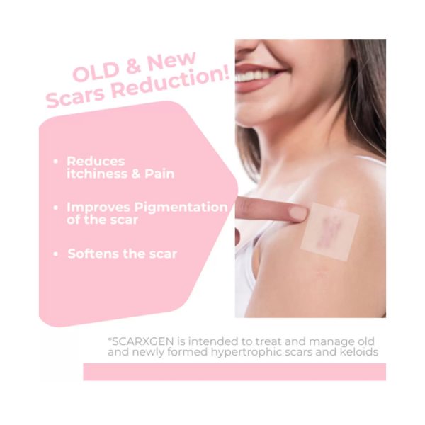 - Scarxgen silicone gel sheet is ideal for use on new and old scars, including surgical scars, keloid, hypertrophic scars, and stretch marks.