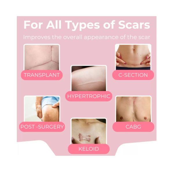 - Silicone gel sheet helps flatten the scar , softens the scar tissue and helps fade scar upon continuous use.