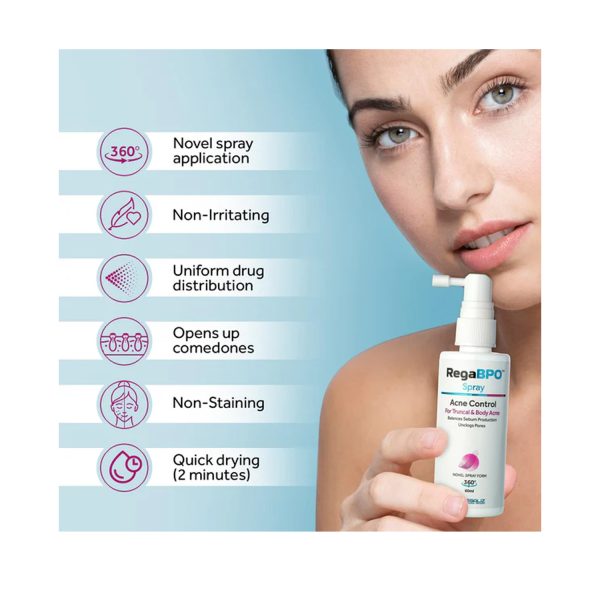 - RegaBPO spray is formulated with potent ingredients that helps to control acne effectively, avoids the further occurrence of acne, and regulates sebum production.