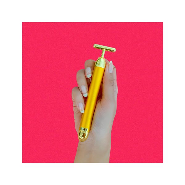 - Gold vibrating face roller diminishes fine lines and wrinkles.