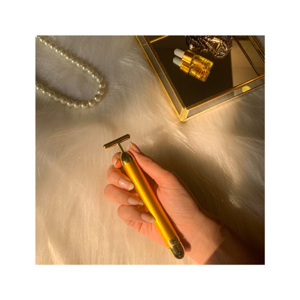 - Contains 1 gold vibrating face roller and 1 beauty oil (3ml).