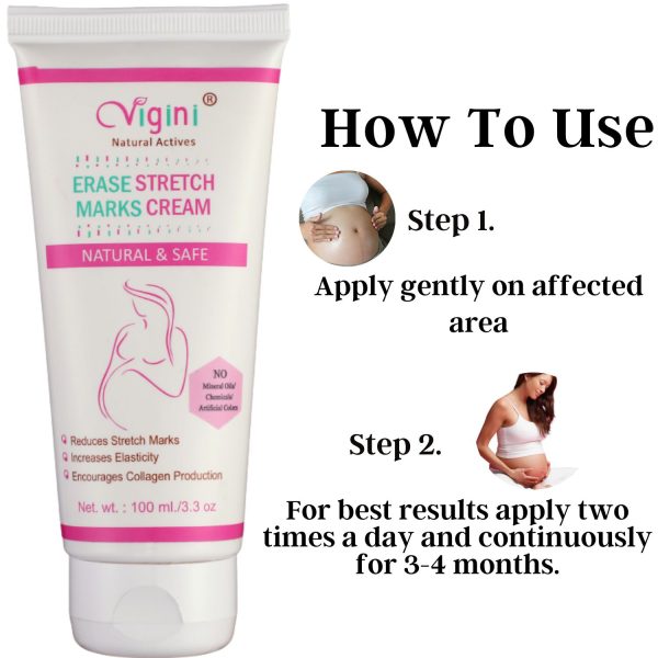 - Vigini Erase Stretch Marks Scars Removal Cream gets completely absorbed enters layers of epidermis, locks moisture